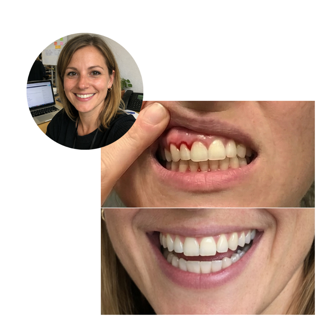 Was mich noch glücklicher machte, war, die gleichen Ergebnisse bei meinen Patienten zu sehen. Menschen, die schon fast aufgegeben hatten, kamen mit stabilem Zahnfleisch und Zähnen zurück, die sich nicht mehr locker anfühlten. Ich kann es ehrlich gesagt nicht genug empfehlen, und ich sage das Gleiche zu jedem Patienten – denn ich habe es an meinen eigenen Zähnen und bei meinen Patienten hautnah erlebt.