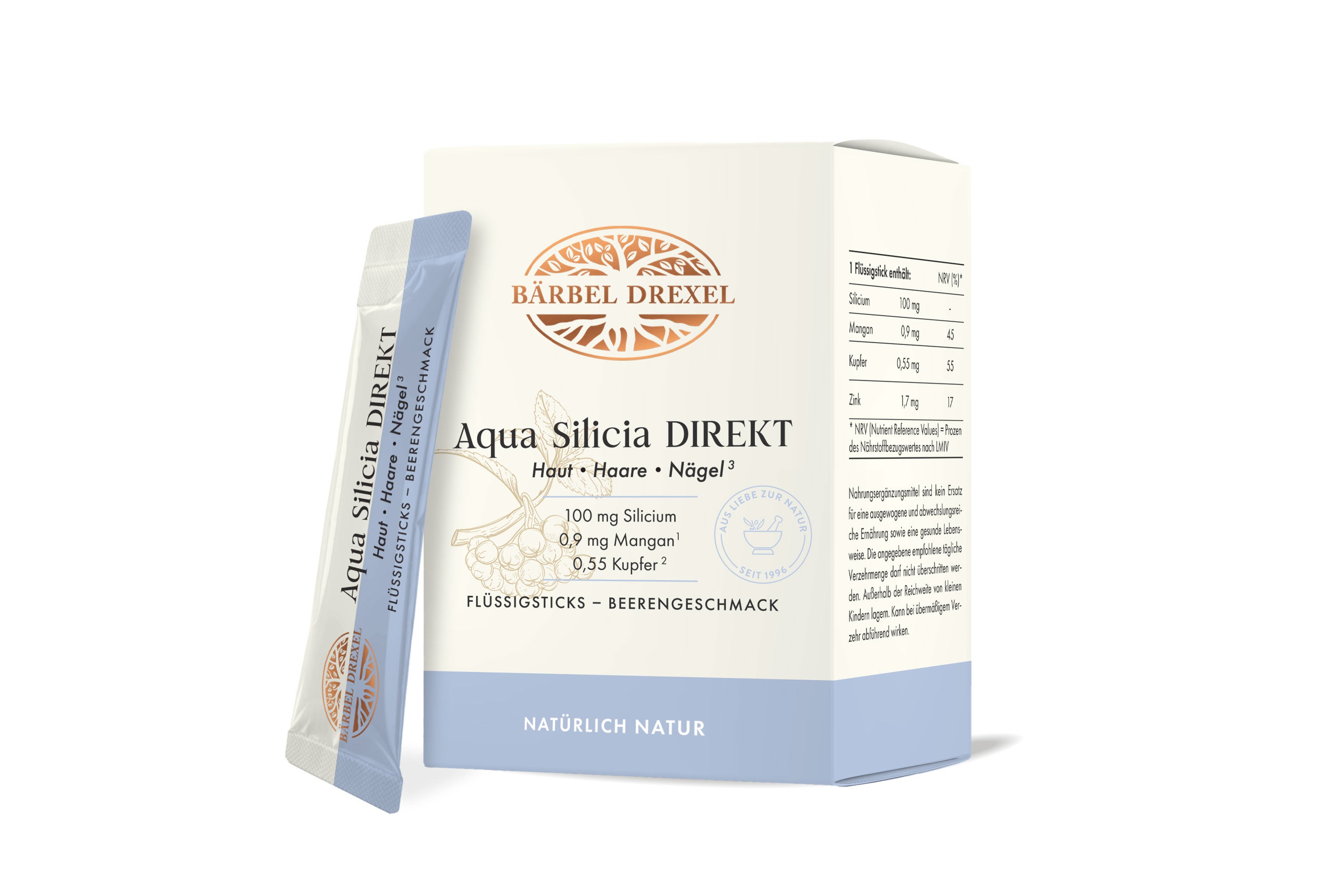 Aqua Silicia von Bärbel Drexel vereint alle entscheidenden Kriterien: maximale Aufnahme, funktionelle Kombination, rein natürliche Zusammensetzung und nachhaltige Herstellung in Deutschland.
